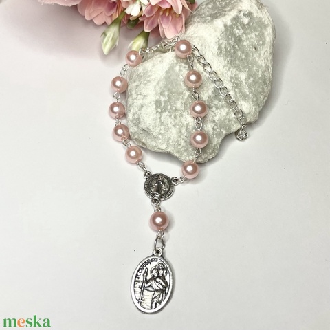 Autós rózsafüzér, tizedes rózsafüzér Szent Kristóf medállal gyöngyház rózsaszín 5509639