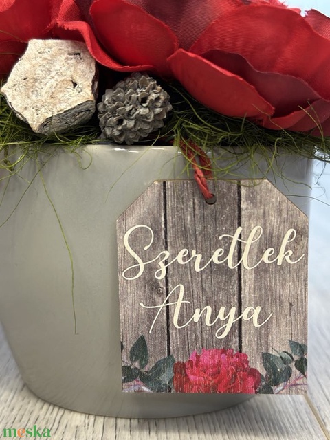 - Anyaga: kerámia, művirág, sisal, fa tábla