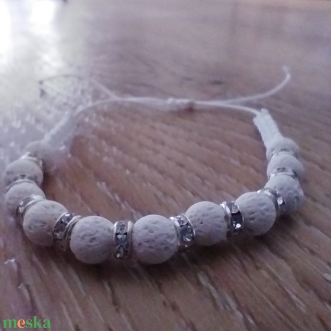 Fehér színű lávakő karkötő zirkon köztesekkel - díszcsomagolásban