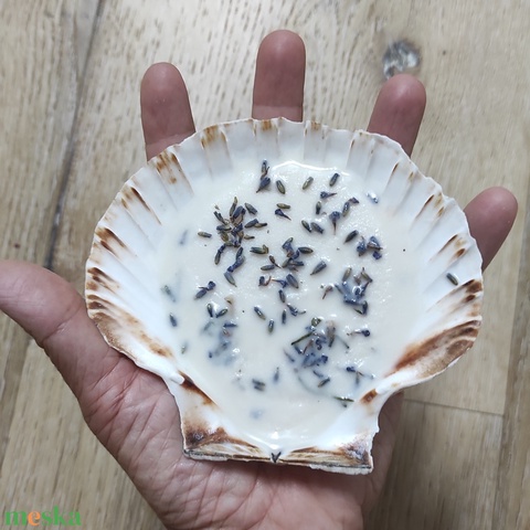 Valódi vénuszkagyló gyertya (Szent Jakab kagyló) levendulával