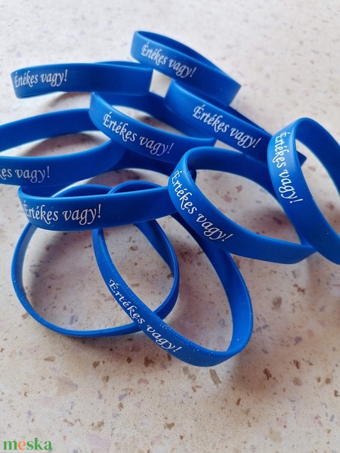 Sötétkék Értékes vagy! feliratos szilikon karkötő felnőtt méret - Ajándéktárgy