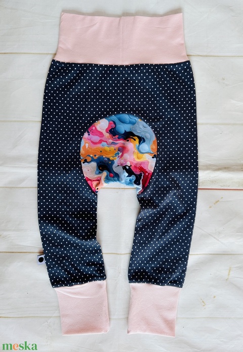 Popókörös, hordozós nadrág 62-74 - sötétkék pöttyök