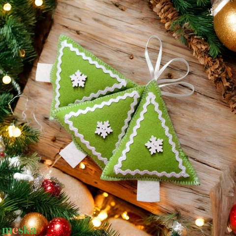 3db Zöld filc dísz