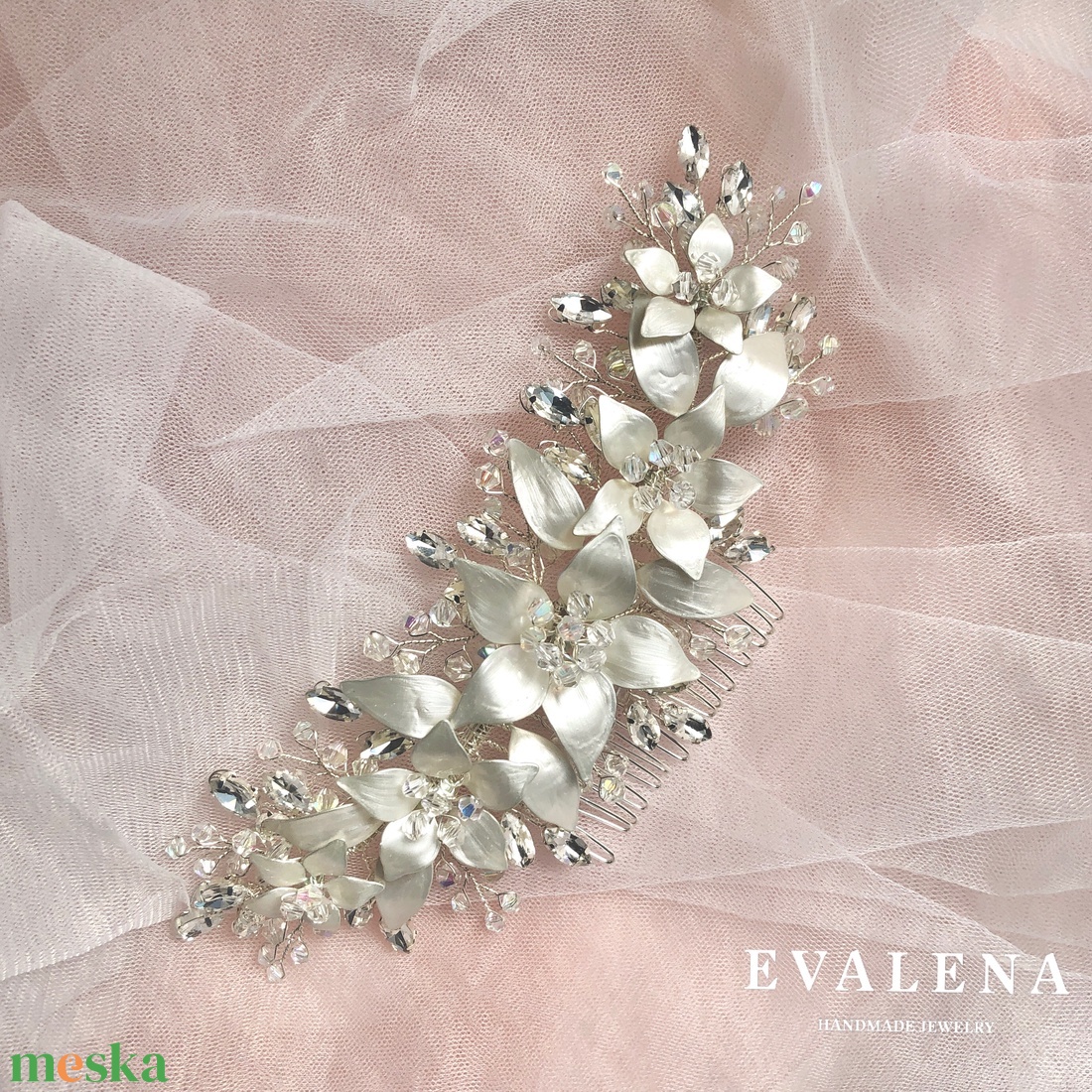 "Üveg" virágos fésűs menyasszonyi hajdísz