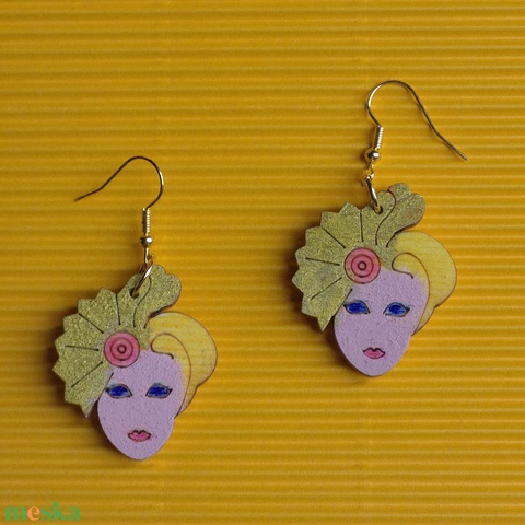 Sárga-arany fa női arc fülbevaló