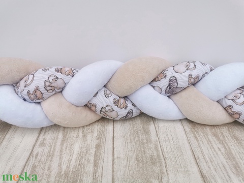 Fonott rácsvédő "Bébi állatos " fehér, bézs minkyvel + kötöző szallaggal
