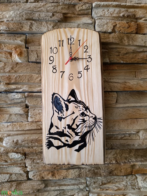 Fából készült cicás falióra