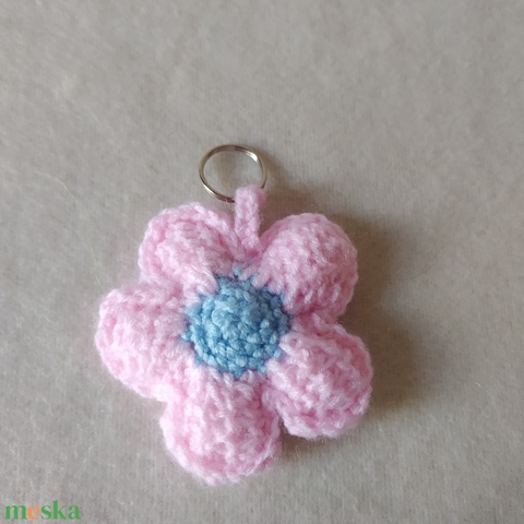 Horgolt 3D virág kulcstartó