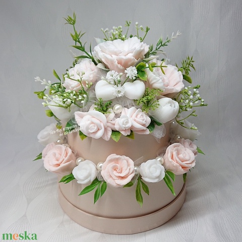 Különleges, emeletes torta szappanvirág box