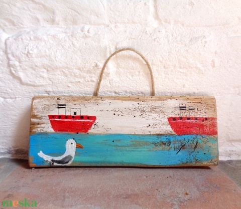 Nagy utazás, Ajándék ötlet, Rusztikus Fatábla, Dekoráció, Hajó, Sirály, Madár