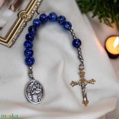 Kék jáspis zseb rózsafüzér Szent Kristóf medállal 5515327