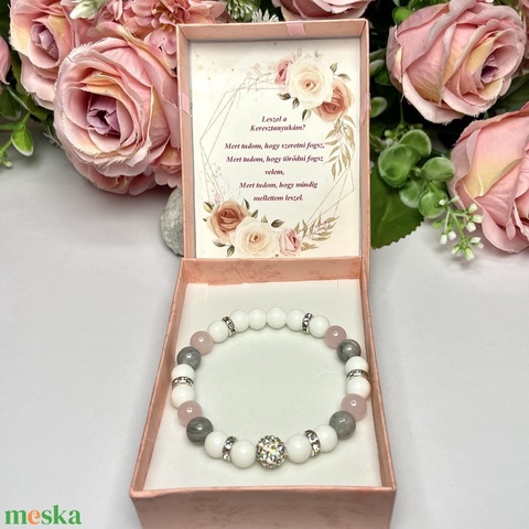 Keresztanya felkérő ásvány karkötő shamballa dísszel ajándékdobozban 5515459