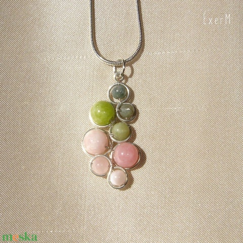 - Anyag/Összetevő ásvány, jáde, angelit, napkő, achát, ezüstözött ékszerdrót, kígyólánc, delfinkapocs