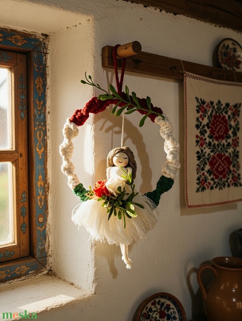- Anyag/Összetevő fonál, művirág dekoráció, fémkarika