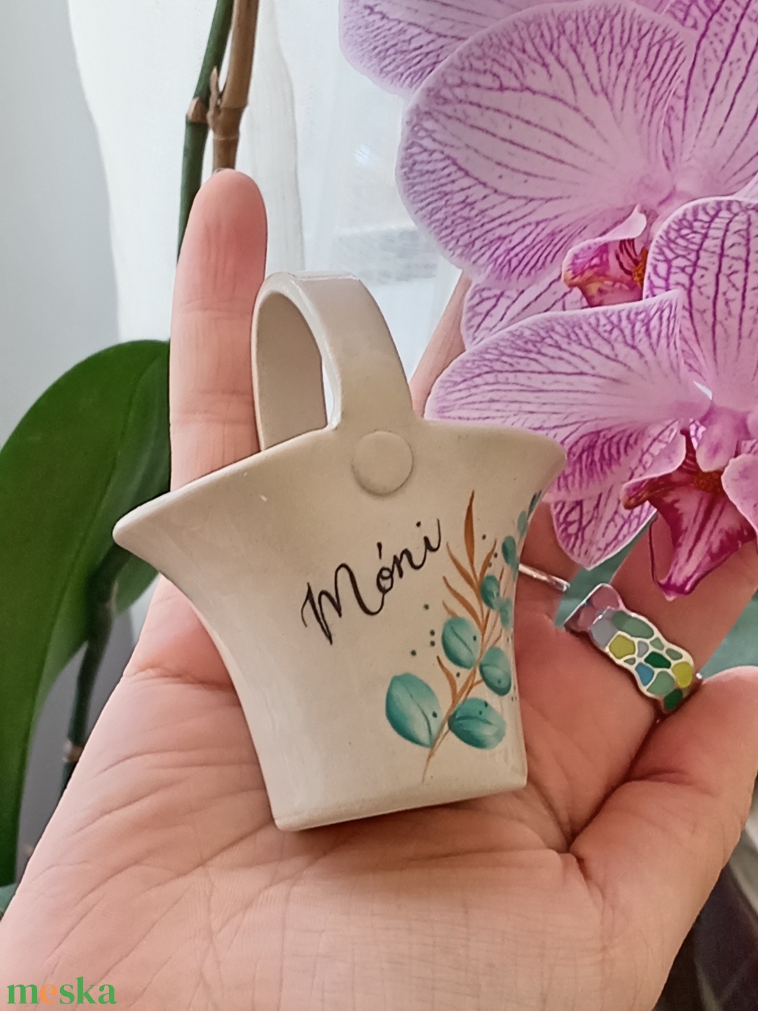 - Anyaga: magastüzű kerámia, porcelánfesték, bézs máz