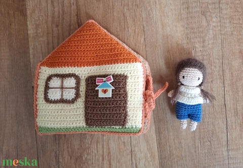 Horgolt babaház babával - csendeskönyv - utazó babaház