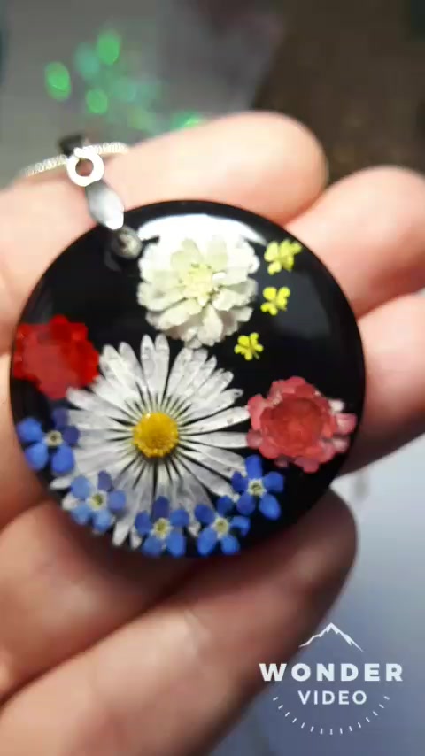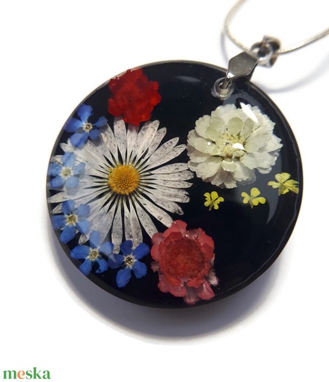 - Anyaga: ékszergyanta, szerelék, virágok, műgyanta