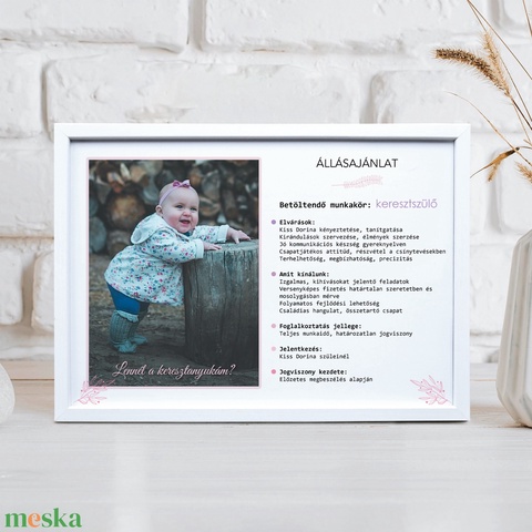 Keresztszülő felkérő grafika, jópofa állásajánlat (digitálisan vagy fotópapíron, keretezve)