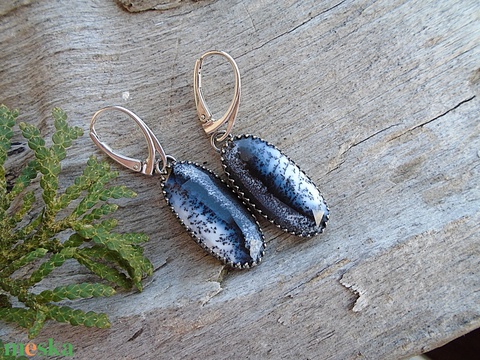 Ezüst fülbevaló Ag925 Merlinit - dendtrit opál