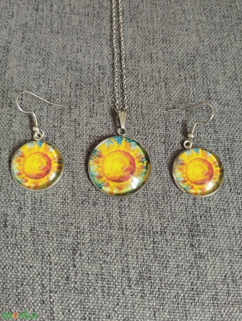 Üveg lencsés, orvosi acél nyaklánc és fülbevaló szett