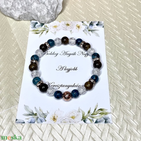 Keresztanyának ajándék anyák napi ásványkarkötő kísérő szöveggel