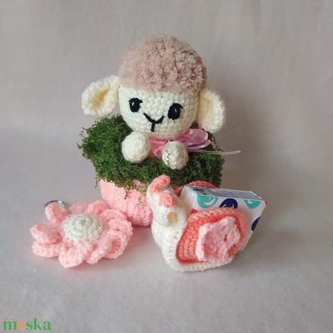 Horgolt bari, bárány kosárban