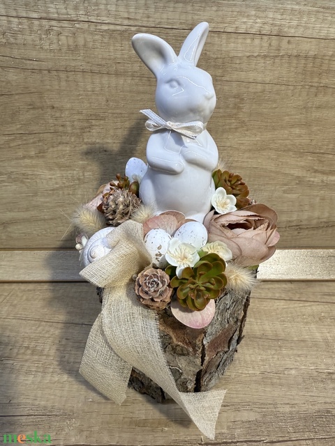 kerámianyuszi, selyemvirág, szalag, kaspó
