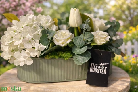 - Anyaga: fém kaspó, oázis, selyemvirág, műmoha