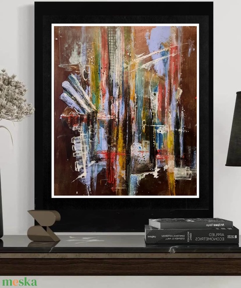 "Pillantás a városra"-absztrakt festmény keretezve az alkotótól