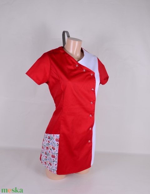 ruha & divat, munkaruha, mincsifashion, mincsi, tunika, egészségügyi, nővérruha, formaruha, orvosi, orvosruha, műtős, szépségipar, kozmetikus, ruha, köpeny, óvoda, átlapolt, csinos, karcsúsított, nővér, egészségügy, matyó, kalocsai