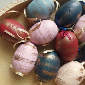 Kézzel festett fa tojás 11 db vegyes színű arannyal
