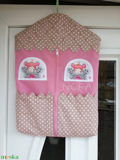 Házikó ovis zsák ruhazsák névvel, tornazsákkal együtt.