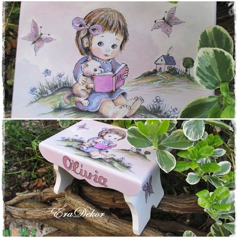 gyerekszoba bútorok, romantikus antikolt festéssel készült fa ajándéktárgyak a provence-i stílus jegyében
