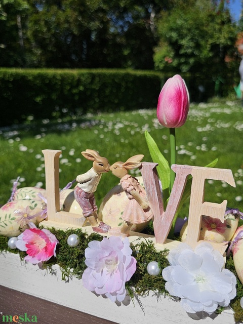 LOVE nyuszis húsvéti asztaldísz handmade tojásokkal