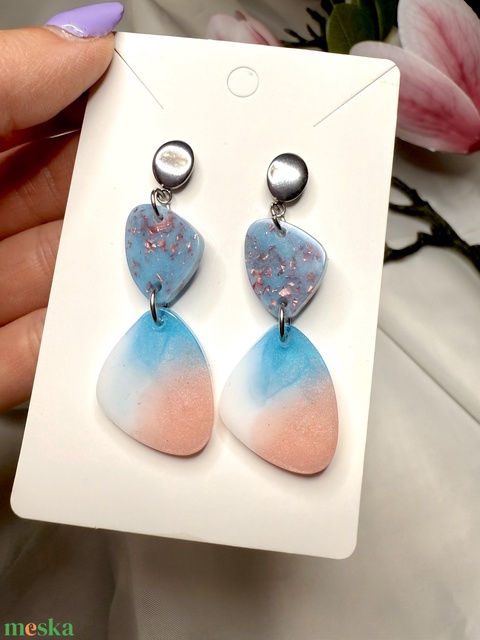 Fehér kék pasztel rózsaszín fülbevaló