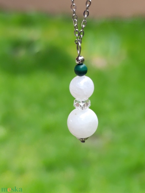 Védelmező nyaklánc malachittal, szivárvány holdkővel és hegyikristállyal