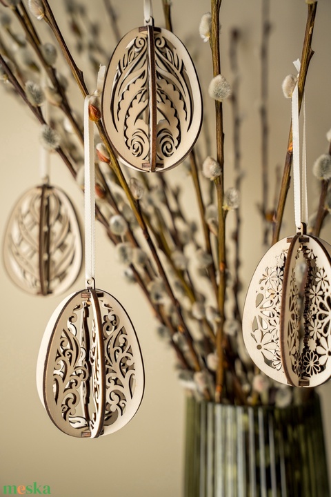 Négy darabos fa húsvéti tojás tavaszi dekoráció virágos