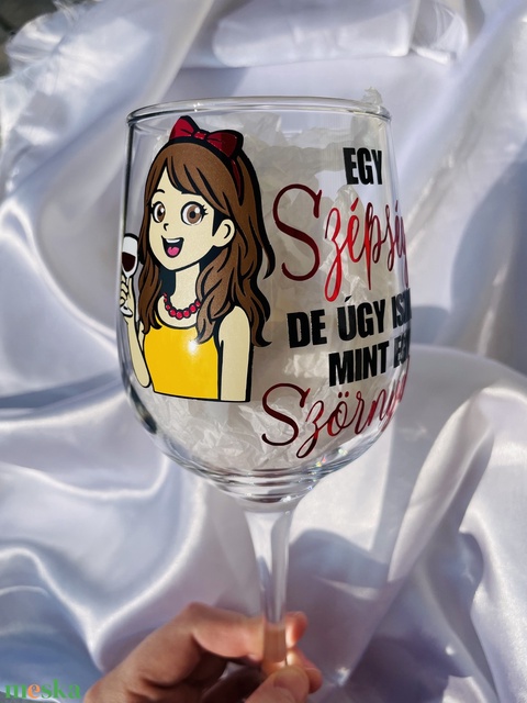 Egyénileg személyre szabható mesefigurás boros pohár vicces felirattal