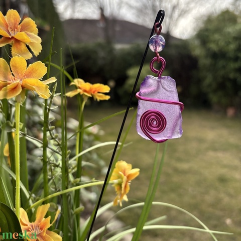 Leszúrható üveg kerti/kaspódísz lila-rózsaszín