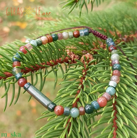 - Anyaga: indiai achát, damilos poliészter zsinór