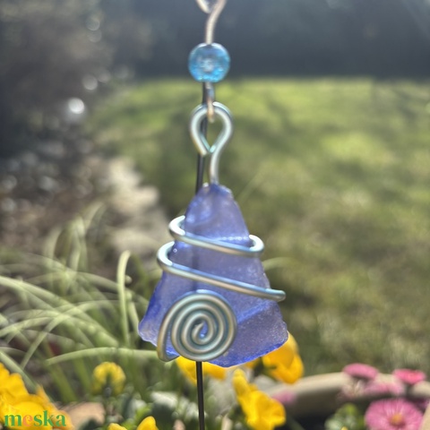 Leszúrható üveg kerti/kaspódísz kék-világoskék
