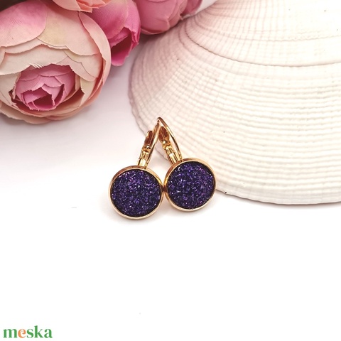 Arany francia kapcsos fülbevaló - csillogó sötét lila lencsével