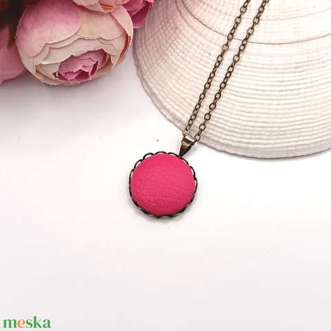 Antik bronz nyaklánc - sötét rózsaszín textilbőrrel