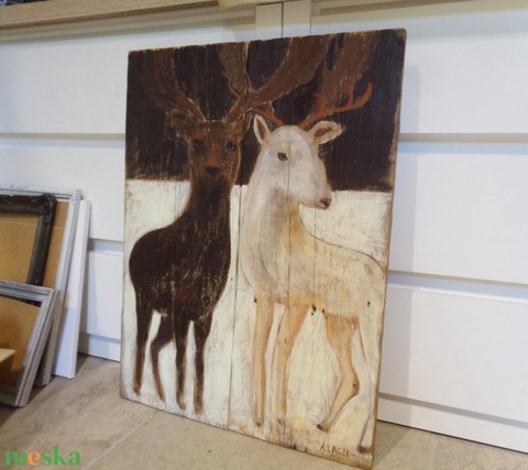 Dámok - Rusztikus Fatábla, Ajándék ötlet - Egyedi Falidísz, Szarvas, Dámvad