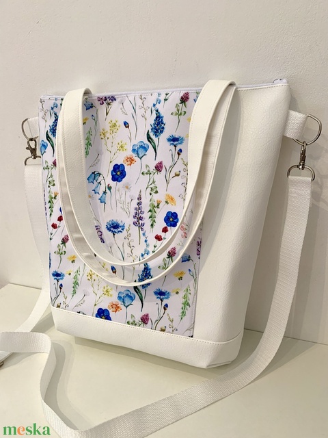 Fehér színes virágos válltáska/ keresztpántos táska/ oldaltáska/ kézitáska