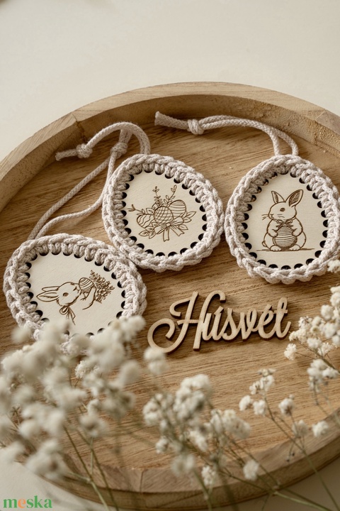 Három darabos tavaszi, húsvéti dísz, horgolt húsvéti tojás - nyuszis szett