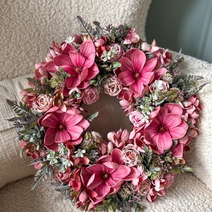 Vintage magnóliás selyemvirág kopogtató teli fazon- virágkoszorú - magnólia tavaszi selyemvirágos ajtódísz