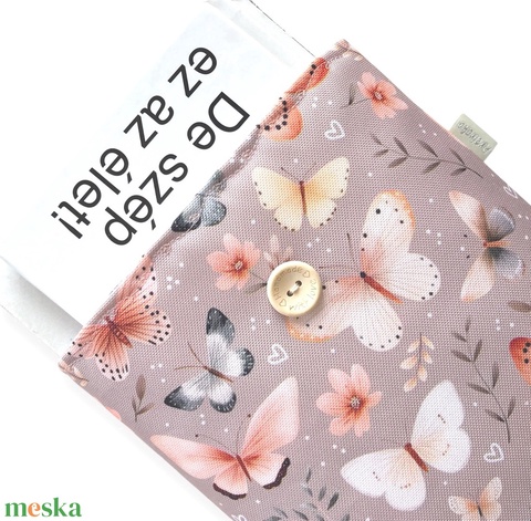 Bélelt, vízálló könyvtok, pillangó és virág mintás, gombos zárral - Artiroka design