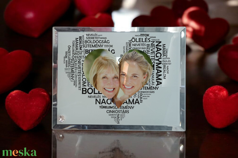 Anyák napi Üvegkép, Fotóüveg (Szív fekete betűből- NAGYMAMA)
