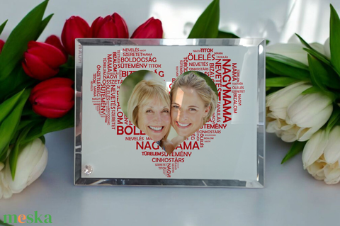Anyák napi Üvegkép, Fotóüveg (Szív piros betűből- NAGYMAMA)